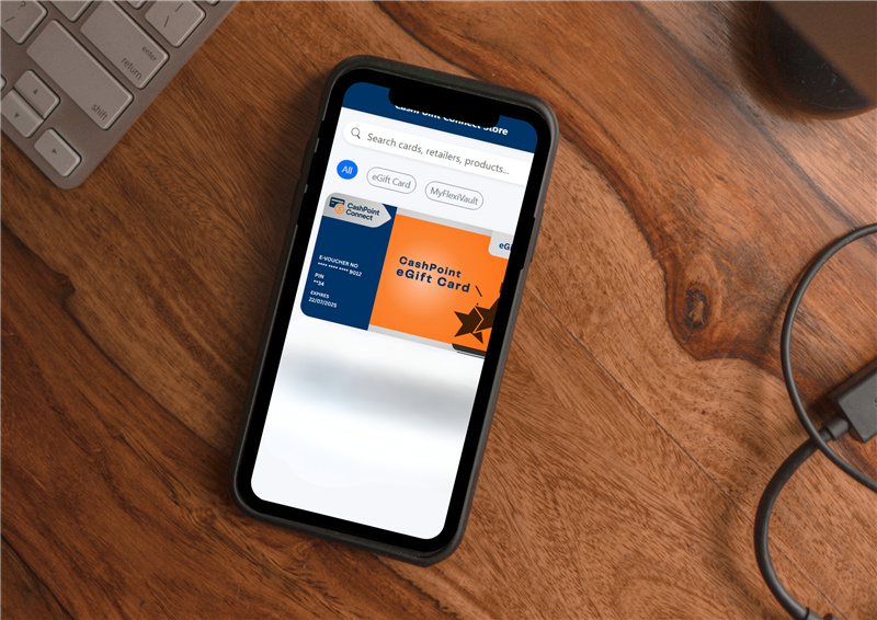 The CashPoint eGift Card is a convenient, digital-first way to share spendable value online or in-store at partnering retailers. Customers can top up and send eGift Cards from their phone, with no postage, printing, or delays. Ideal for thoughtful, last-minute gifts or personal top-ups.